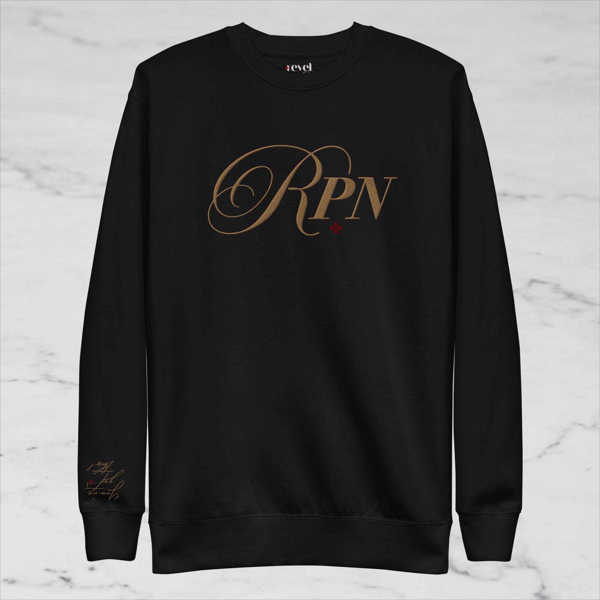 With gold and sand coloured cursive typography, this wine label-inspired crewneck brings a touch of elegance to help you feel luxurious whilst comfortable! This sweater makes a great gift for your Registered Practical Nurse friends.