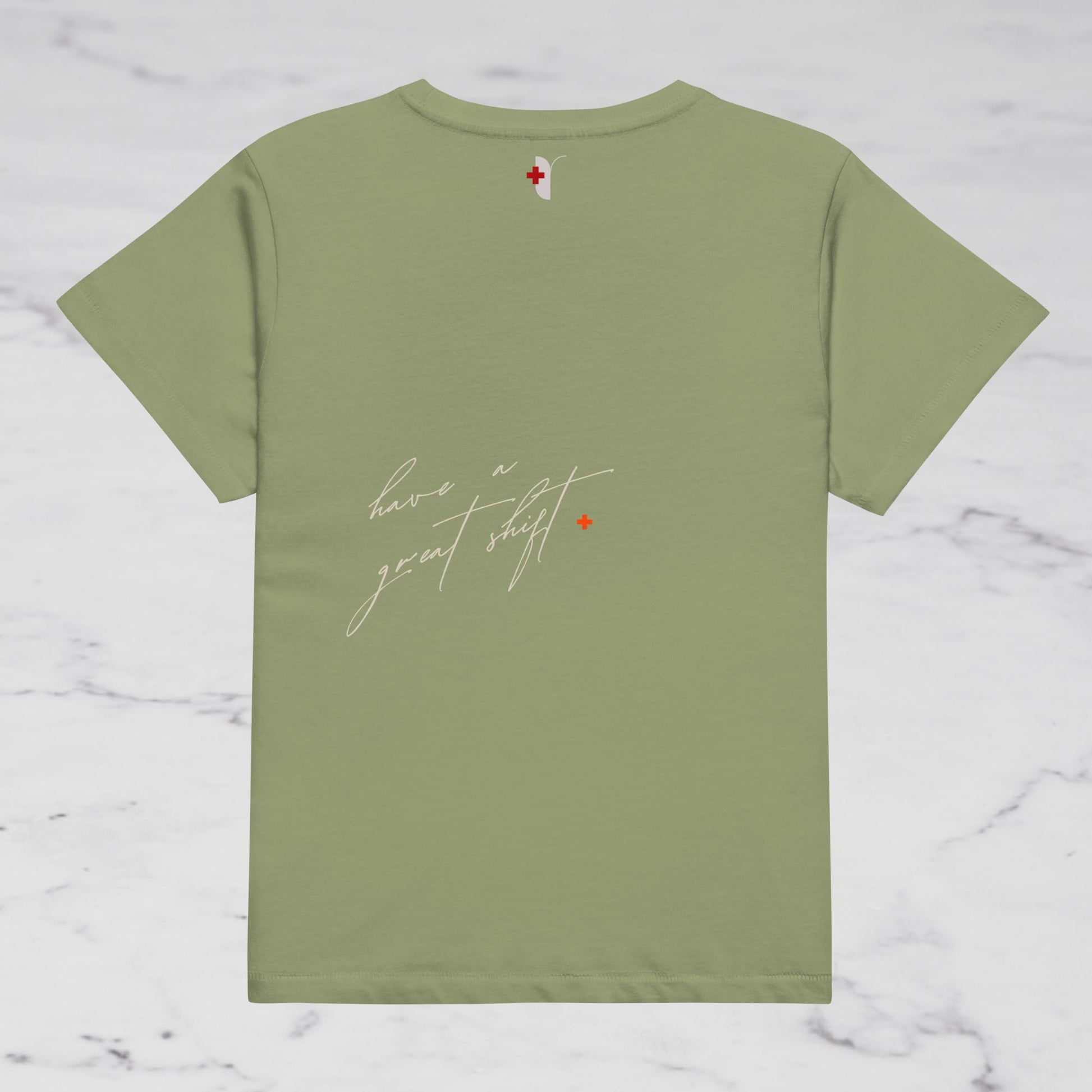 Be proud of your knowledge, contribution, and expertise by showing off your degree in this flattering slim fit tee. With its shorter activewear length, this shirt will look best untucked with high-waisted scrub pants (and appropriate PPE of course!).